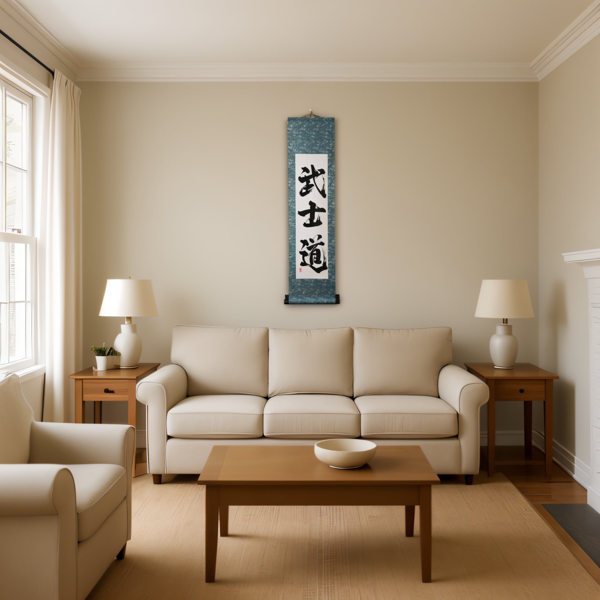 By displaying this scroll, you bring the proud spirit of the Samurai into your home or dojo, where these values can inspire and influence your life. 武士道 emphasizes not only physical strength but also the importance of mental fortitude and self-discipline.