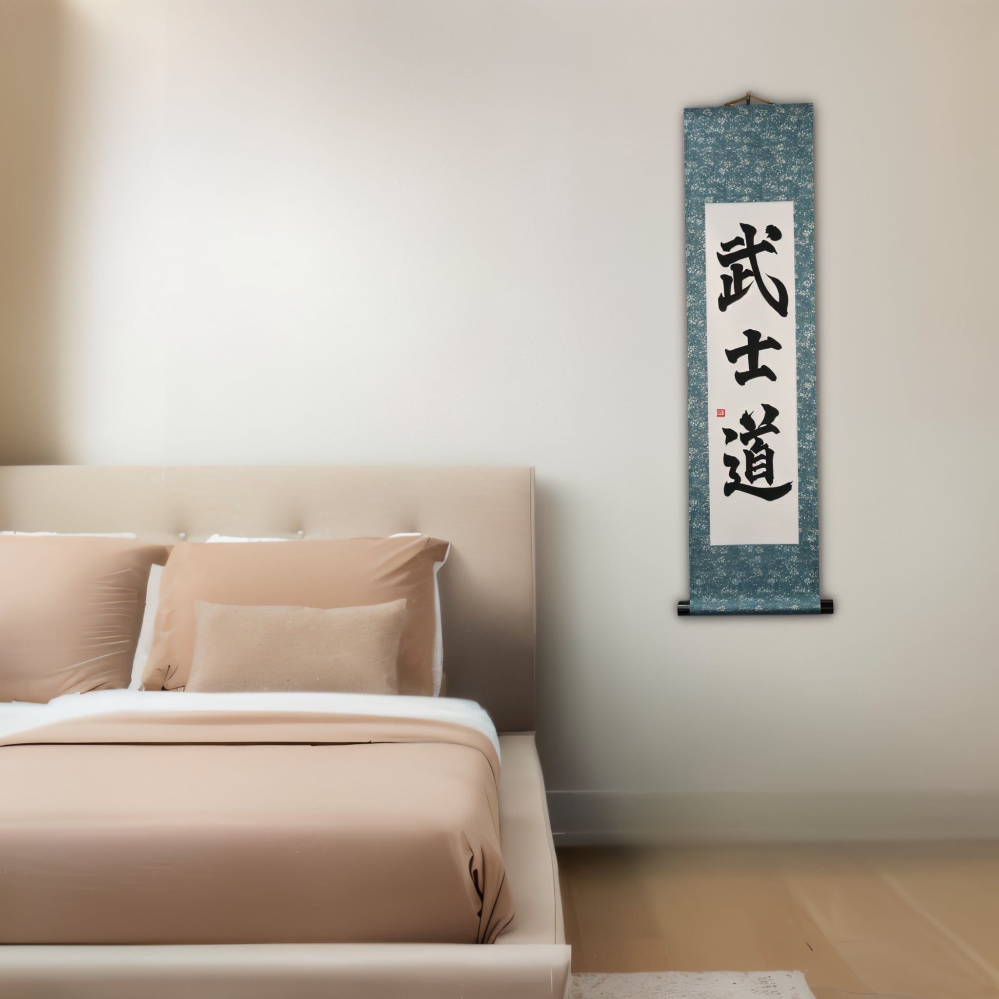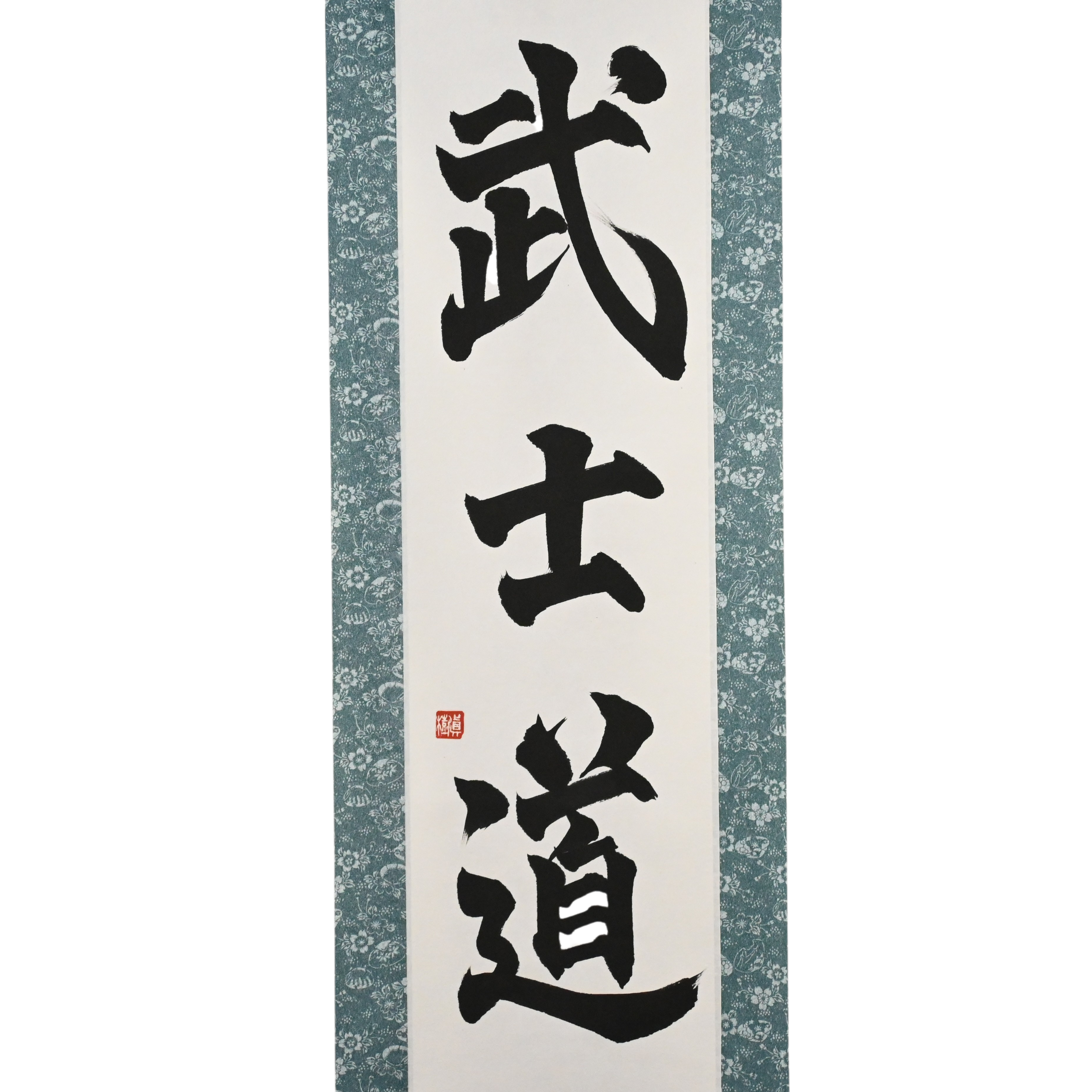 his calligraphy scroll features the powerful word 武士道 (Bushidō), which embodies the way of the Samurai.
