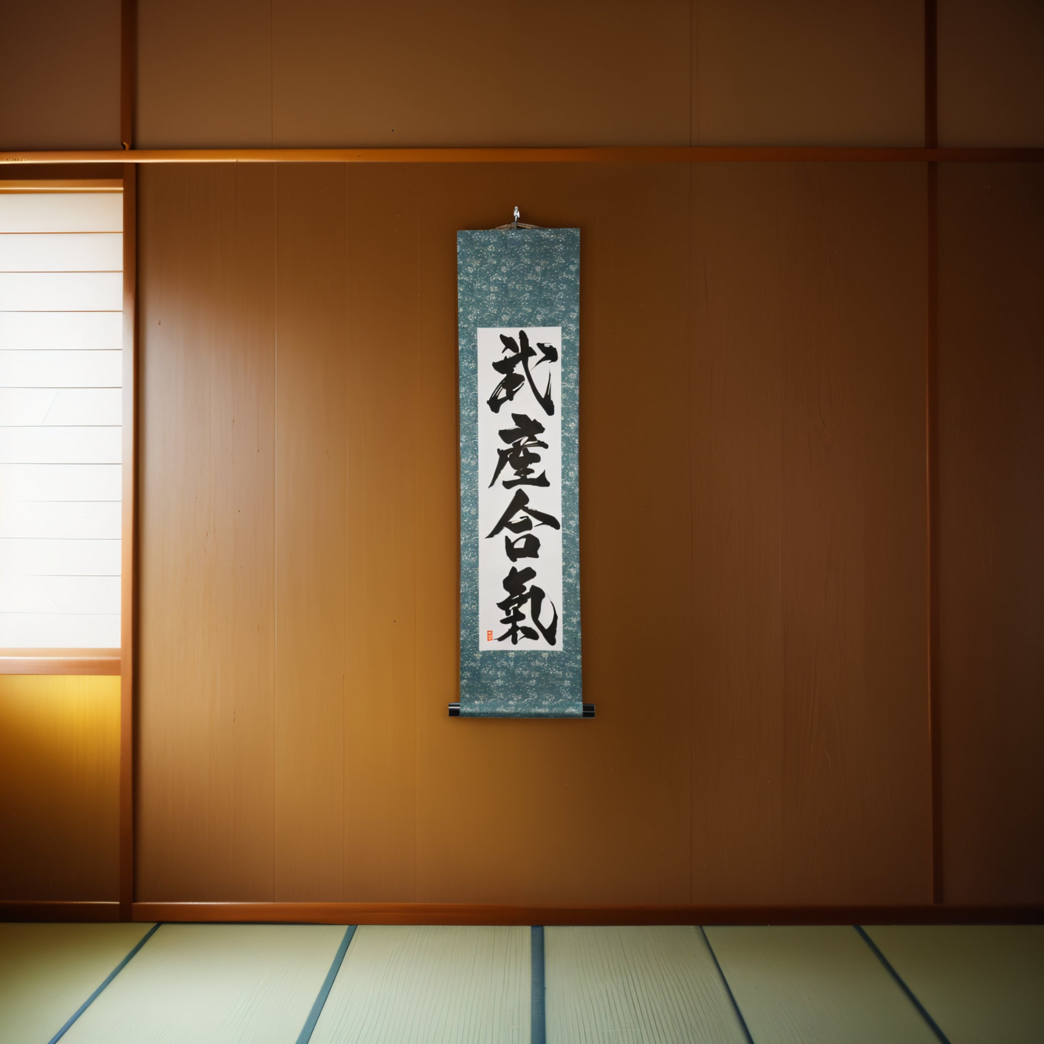 This scroll serves as a spiritual anchor and inspiration — a reminder that the ultimate path of Aikido lies not only in mastery of form, but in the birth of harmony through martial spirit.